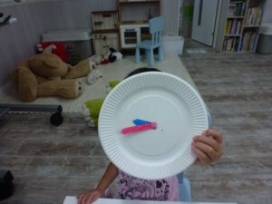 負けてしまったお友達は新聞紙を1回畳みます。