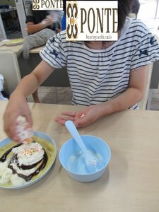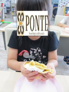 おやつ作り♪ こんにちは、ぽんてステラの野口です! 今日のおやつ作りでは【クレープ】を作りました✨ トッピングのチョコを配ってくれたお友達、 ソーセージをカットしてくれたお友達 ありがとう☺✨ 自分の好きなものをトッピングして~ 『いただきます😋』 みんなでおいしく食べました🤩 次回のおやつ作りもお楽しみに~♡ それではまた明日👋