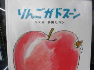 よみきかせ ぽんてステラの青木です 今日のお話し絵本「りんごがドスーン」でした かわいい大きなリンゴの挿絵です どんなストーリーになるのかページをめくりながらみんなで考えました どれくらいの大きさのリンゴのお話かみんなで考えてみました みんなの想像力が楽しく読み手もワクワクな気分でした みんな静かにお話聞いていました 今度はどんなお話にしようかな?!