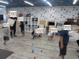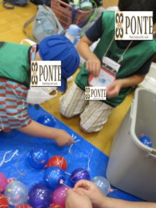 室内遊び【玉入れ】 ぽんてステラの青木です 今日も蒸し暑かったですね 今日は室内で玉入れゲームをしました 赤チーム・青チームに分かれてスタート! 少しずつかごが高くなっていきました どうしたら入るかジャンプしたり、高ーくボールを投げて工夫をしていました 簡単そうに見える玉入れも終了するとみんな汗をかいていました 室内でも体を動かして外で遊べない分すっきりしたかな?!