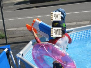 プール遊びの日♪ こんにちは、ぽんてステラの野口です! 今日はプールの日でした♪ プールに入ると浮き輪や水鉄砲を手に取り水遊び開始😁 水鉄砲の矛先は~ もちろん先生たちに!!😂 びしょ濡れになりながらみんなで楽しみました😎 帰ってきてからは少しみんなで休憩し おやつを食べました🍩 次の水遊びもお楽しみに~! それではまた明日👋