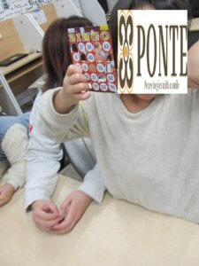 ビンゴゲーム☆ こんにちは、ぽんてステラの野口です! 今日はビンゴゲームをしました。 1人1枚カードをもらって、スタート★ 数字をよーく聞いて、 自分のカードにあるか確認!! しばらくするとあちこちから 『リーチ!!』と聞こえてきました👂 今日は3人ビンゴしたら終わりでした。 ビンゴになった3人のお友達、 おめでとう🎊 またやろうね😉 それではまた明日👋