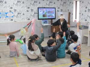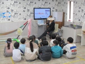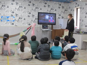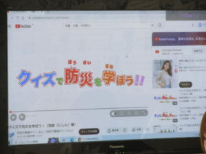 今日は、防災のクイズを映像で見ながら地震が起きた時の心構えを学びました。