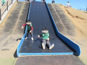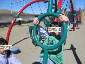 今日は、さくら公園にお出かけをしてすべり台やアスレチックをたのしみました。