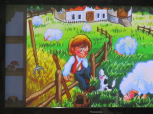 読み聞かせの題はオオカミ少年です。